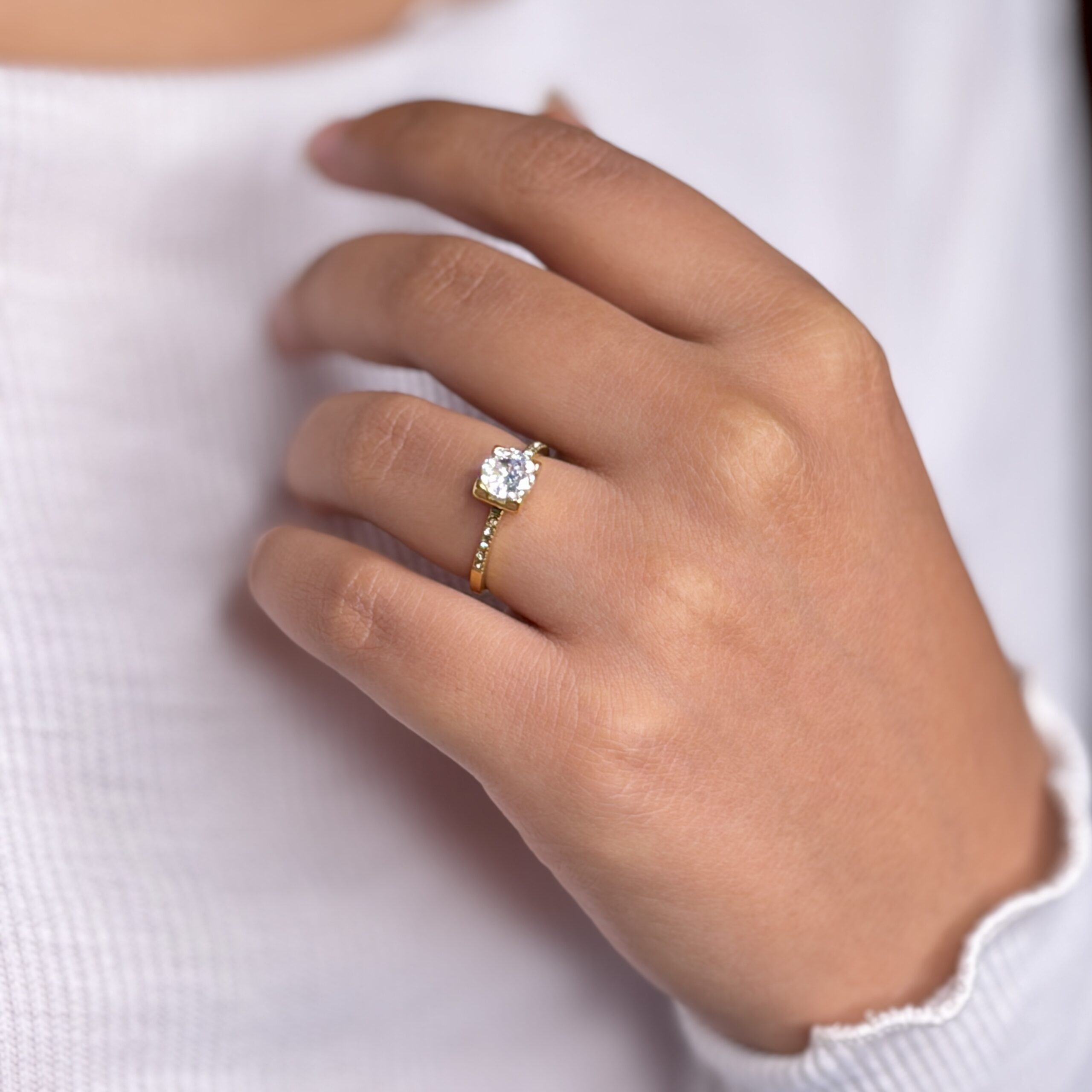 This 18k gold-plated ring features a 312 stainless steel base that is waterproof and anti-tarnish.It is 100% hypoallergenic and safe for sensitive skin.