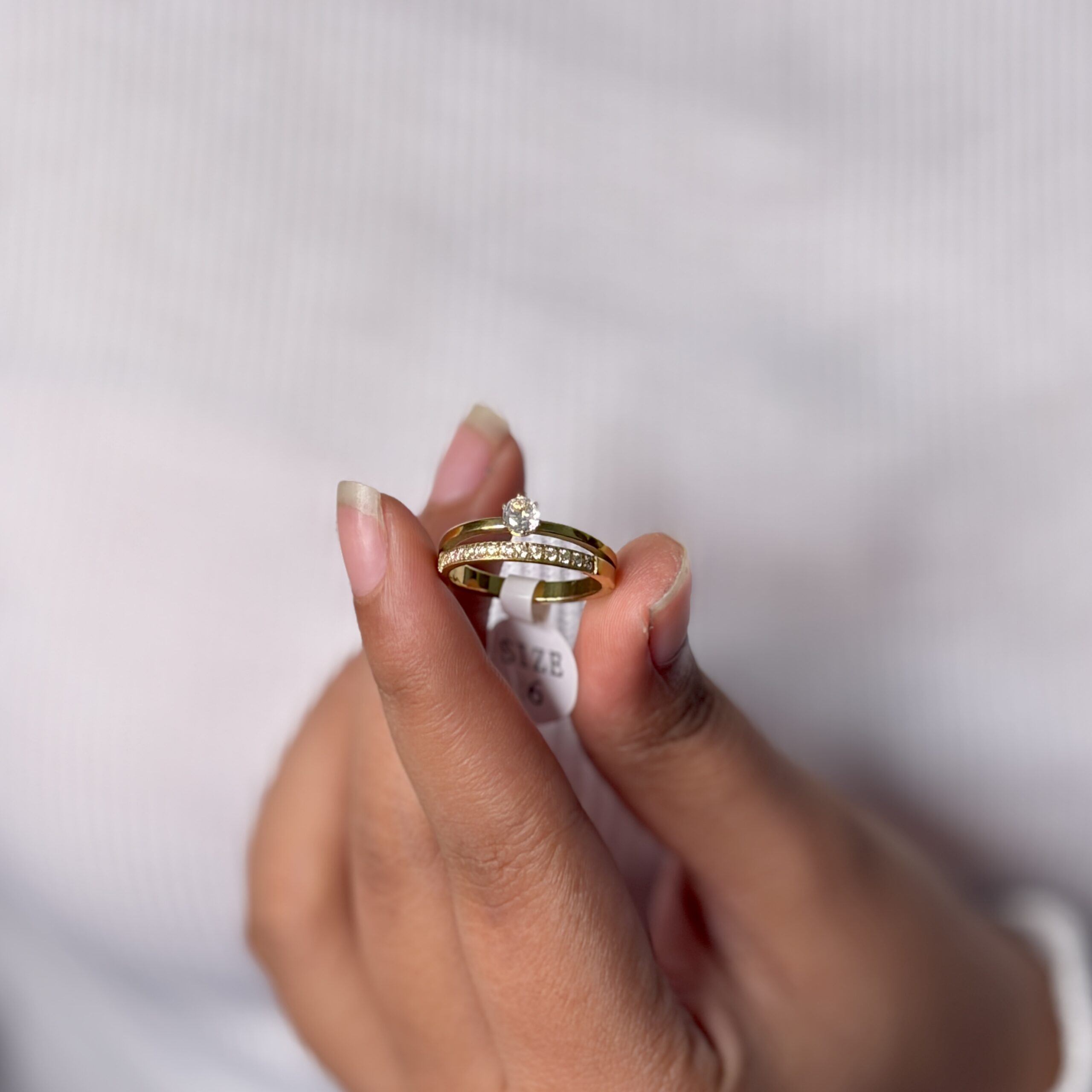 This 18k gold-plated ring features a 312 stainless steel base that is waterproof and anti-tarnish.It is 100% hypoallergenic and safe for sensitive skin.