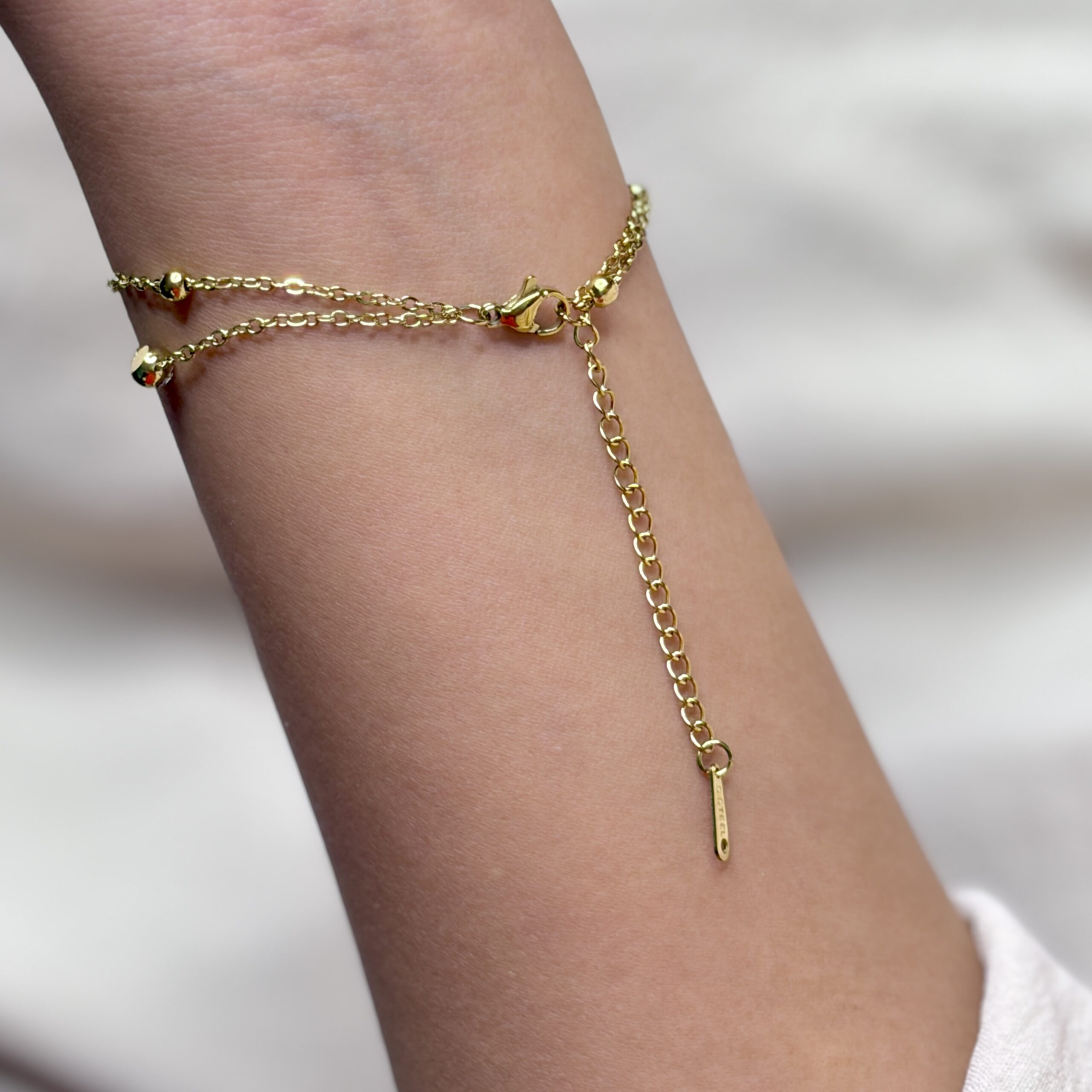 This 18k gold-plated Bracelet features a 312 stainless steel base that is waterproof and anti-tarnish.It is 100% hypoallergenic and safe for sensitive skin.
