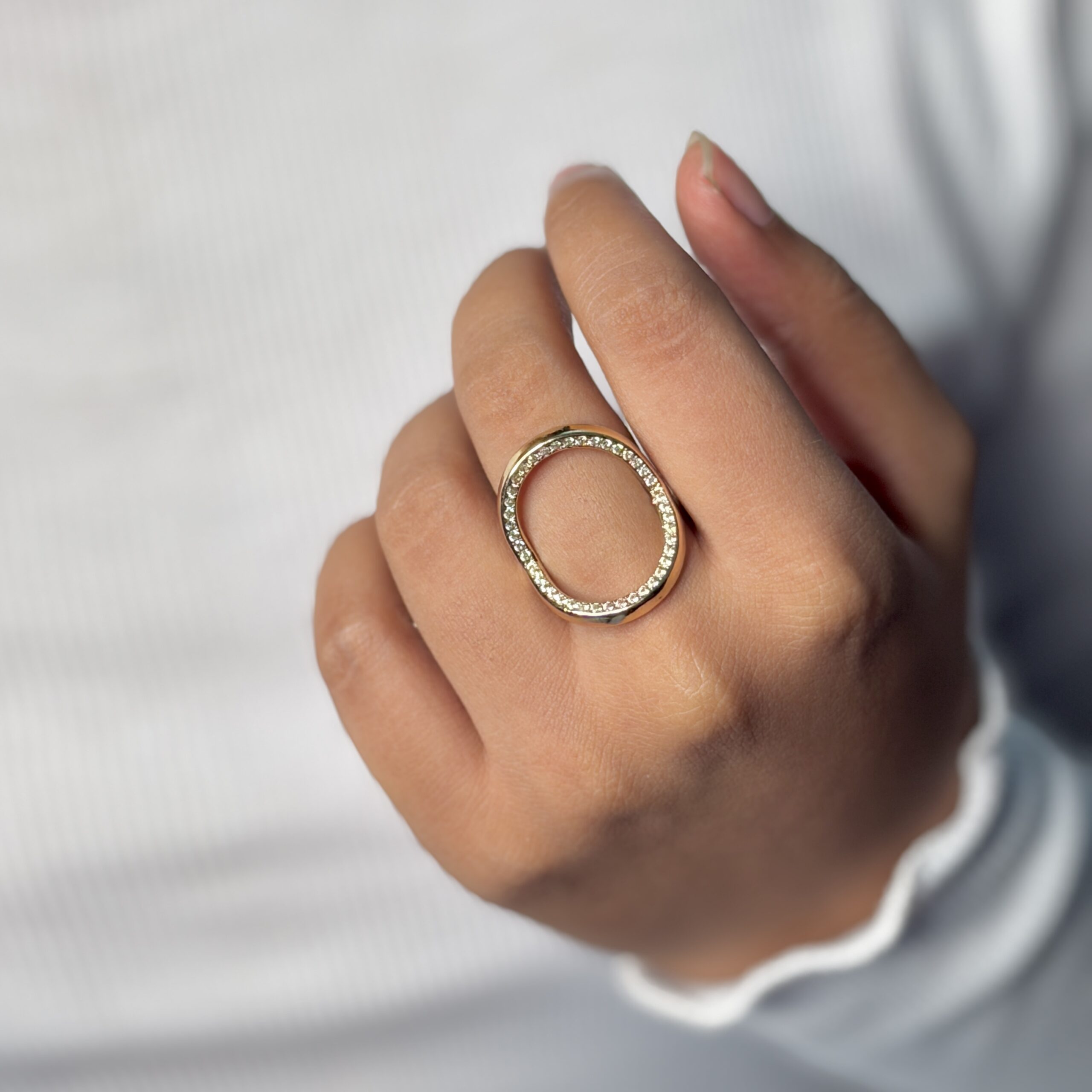This 18k gold-plated ring features a 312 stainless steel base that is waterproof and anti-tarnish.It is 100% hypoallergenic and safe for sensitive skin.