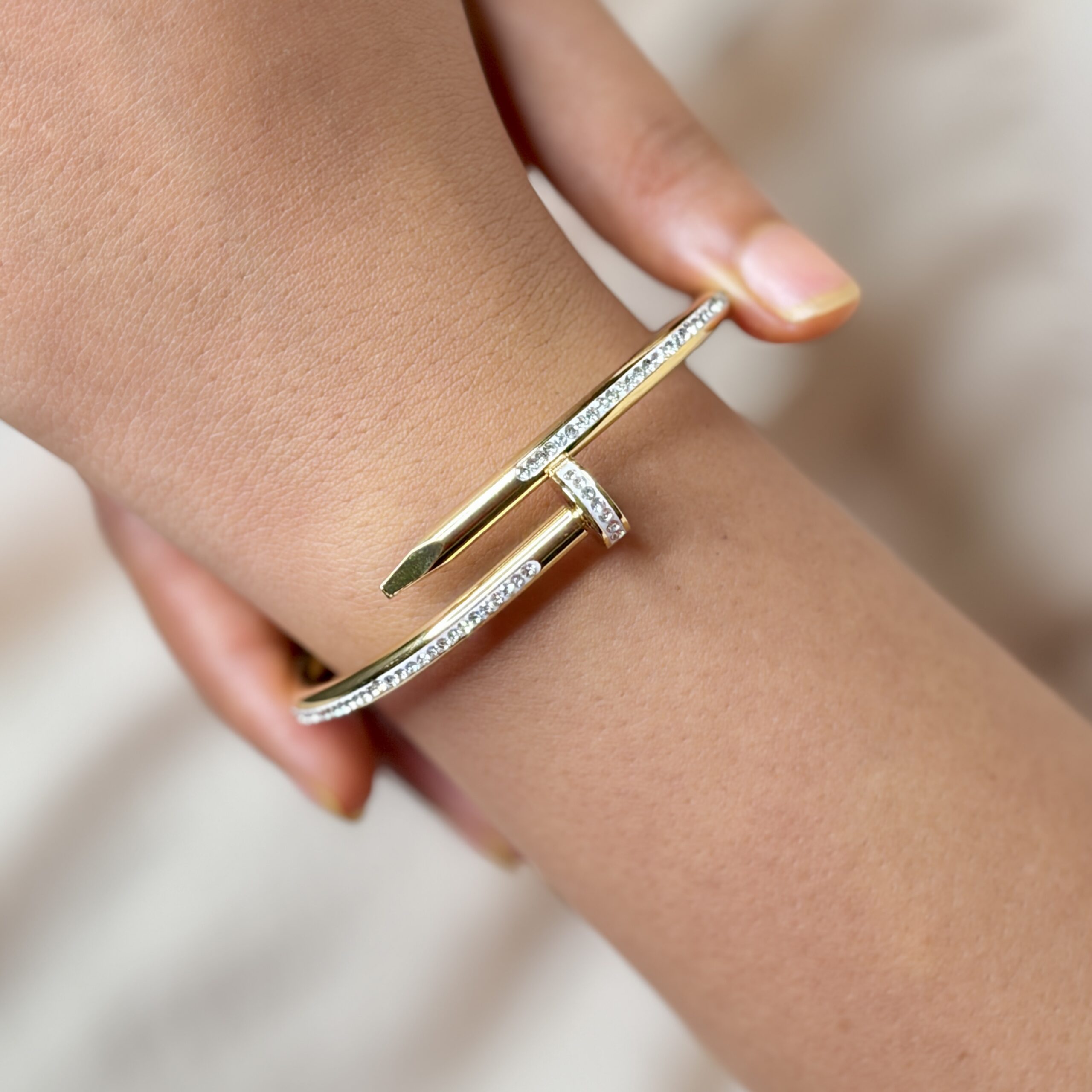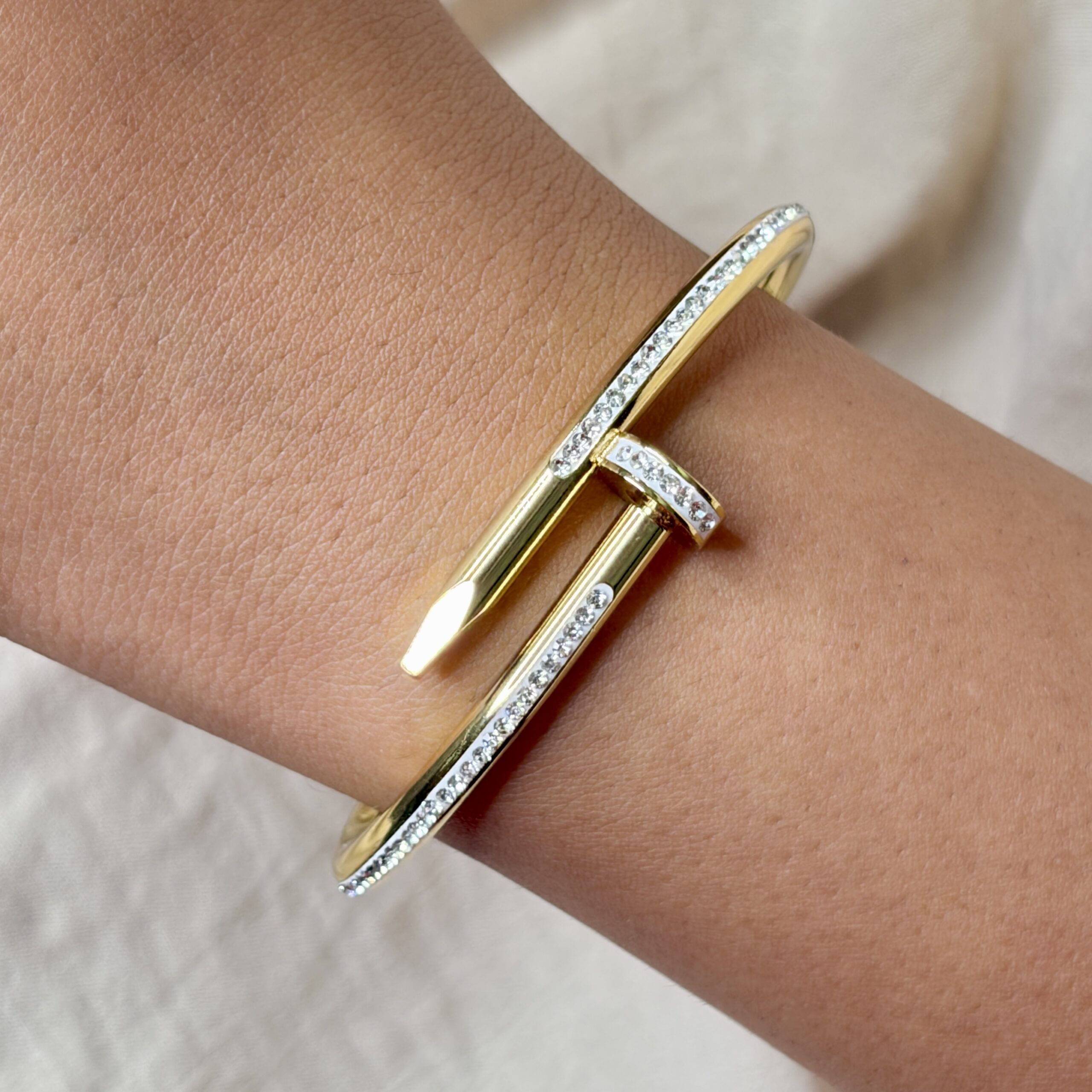 This 18k gold-plated cuff bangle features a 312 stainless steel base that is waterproof and anti-tarnish.It is 100% hypoallergenic and safe for sensitive skin.